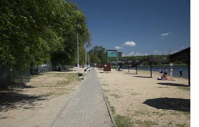 При этом у пляжа много преимуществ. Например, большое количество беседок, где можно отдохнуть и перекусить. Еду и воду придется захватить с собой: магазинов и кафе рядом с пляжем нет. Не появились еще и какие-либо развлечения, так что место подойдет любителям спокойного отдыха. Оценят его и те, кто поддерживает себя в форме: на территории много различных тренажеров.