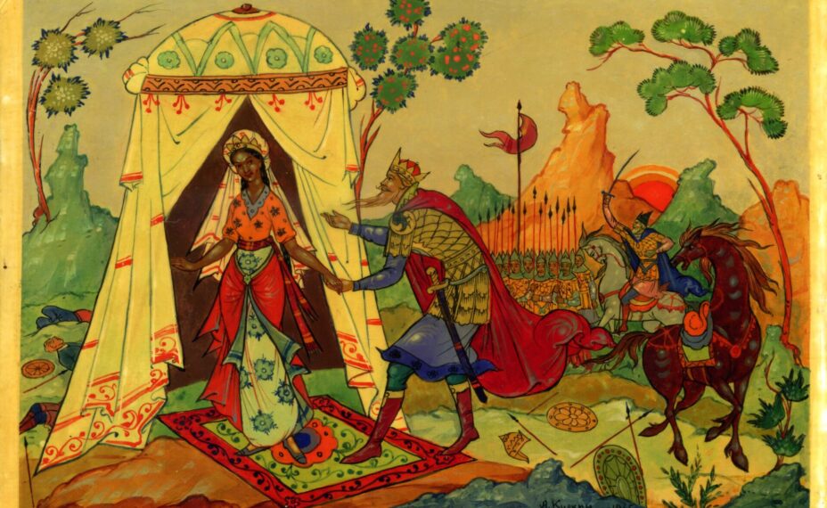 Среди работ палехских мастеров - серия иллюстраций, выполненных к произведению А.С. Пушкина «Сказка о золотом петушке». Фото: Музей ИЗО