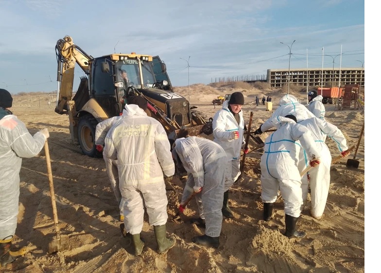 Спасатели из Ростова просеяли сотни тонн песка, чтобы очистить побережье Анапы от мазута